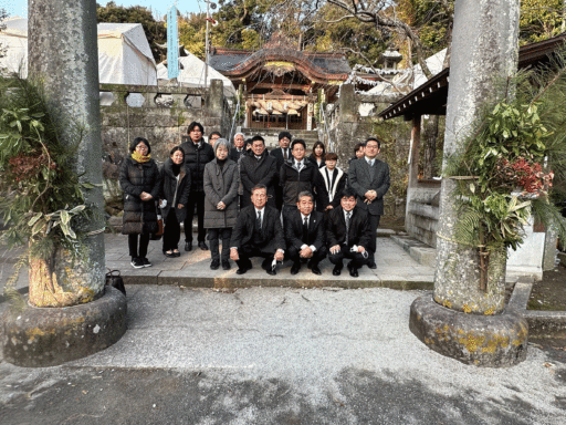 社員全員で矢上神社に参拝、お祓いを致しました