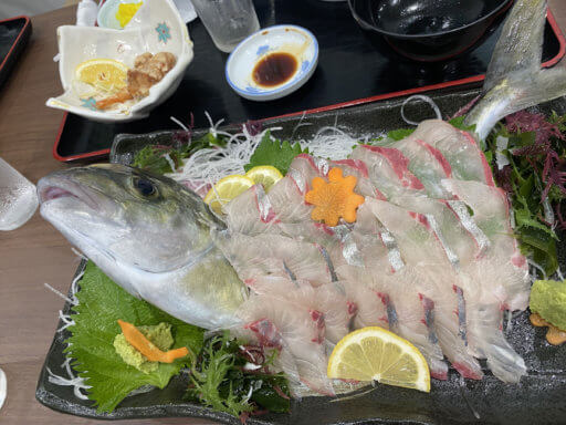 大きなシマアジの活きづくり!まだぴくぴく動いています