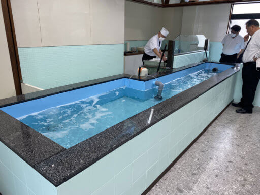 大きな生簀も塗り替え、天井に大型鏡を設置
