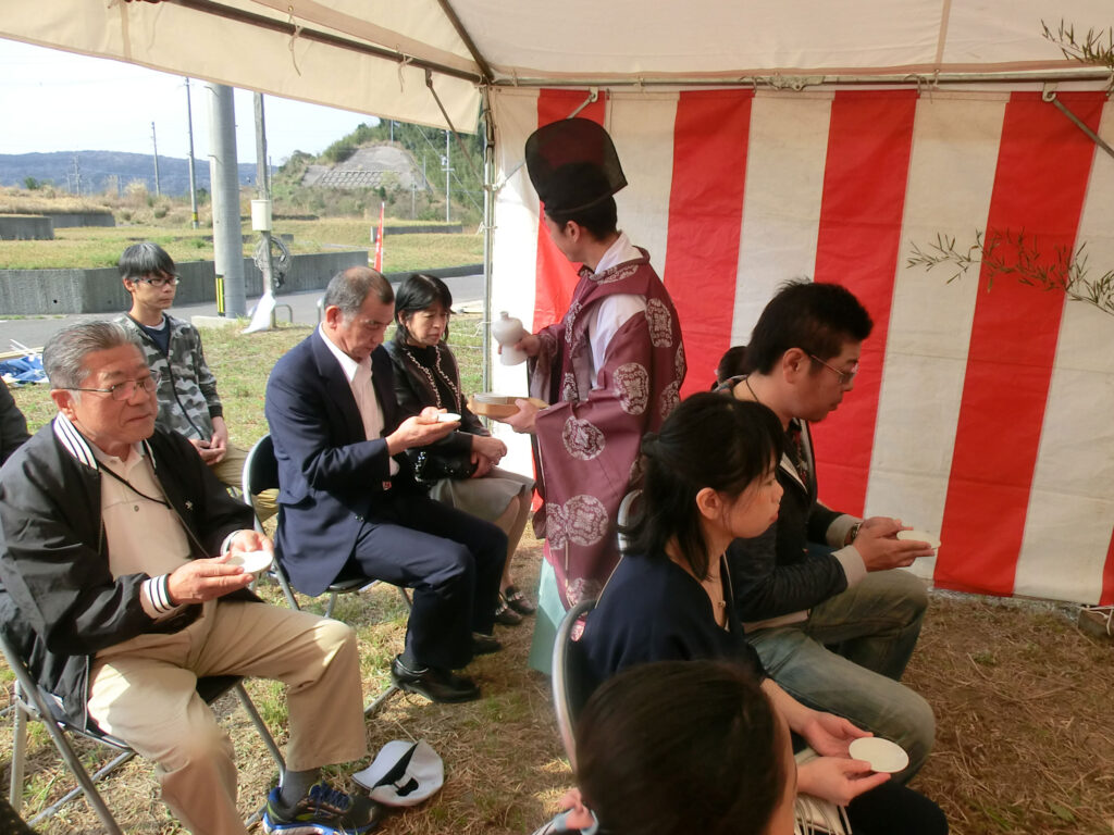 無事に地鎮祭を終え、工事の安全と皆様のお幸せを願ってお神酒を頂きました
