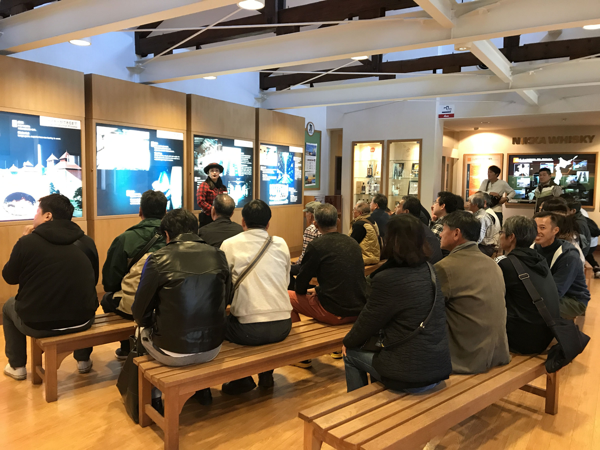 ウィスキー製造工程の説明を受けて、工場見学、その後お楽しみの試飲