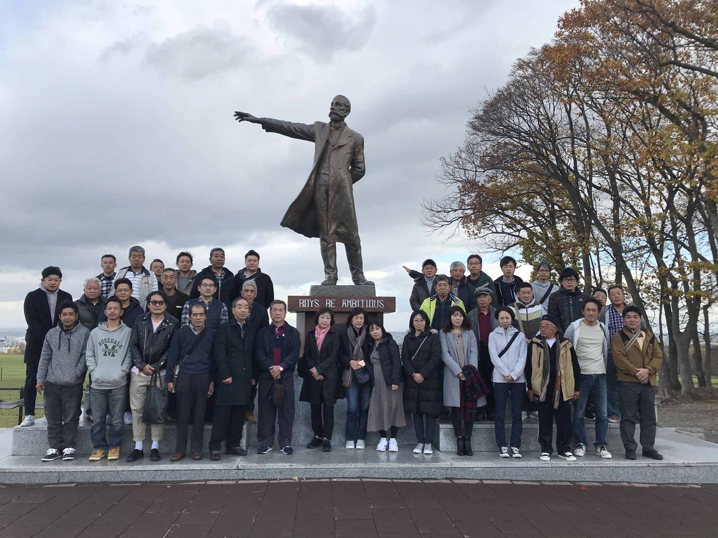 3日目、札幌羊ヶ丘でクラーク博士と一緒に記念写真