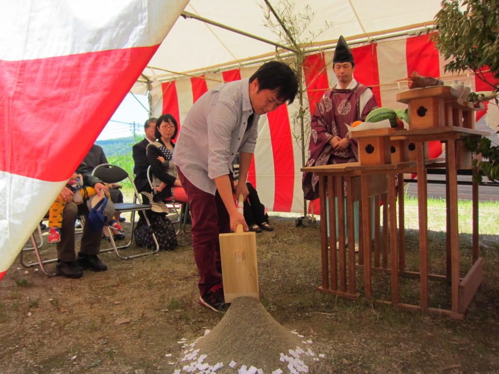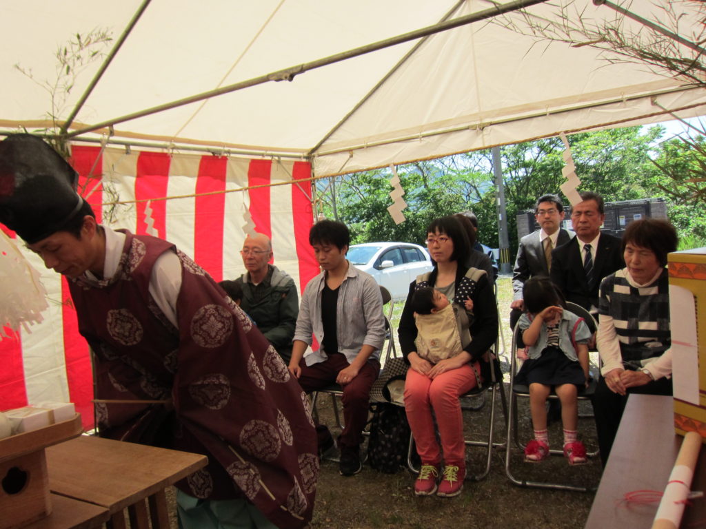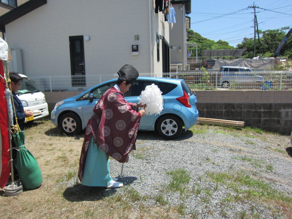 本日の神主は福田天満神社様、土地のお祓い中です