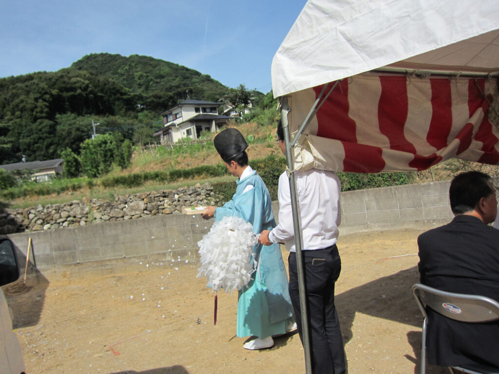 神主様も汗びっしょりで敷地のお祓い