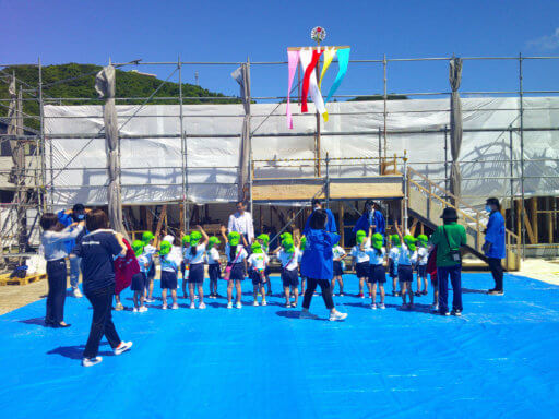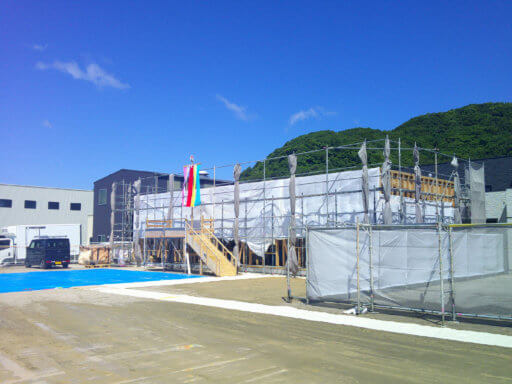 棟上げの幟が高々と上げられました!