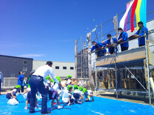 今度は子供たちが餅撒きの番。