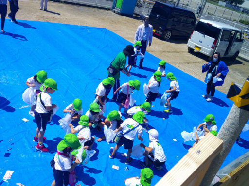 理事長様も子ども達を見て嬉しそう。ほら、そこにも落ちてるよ~