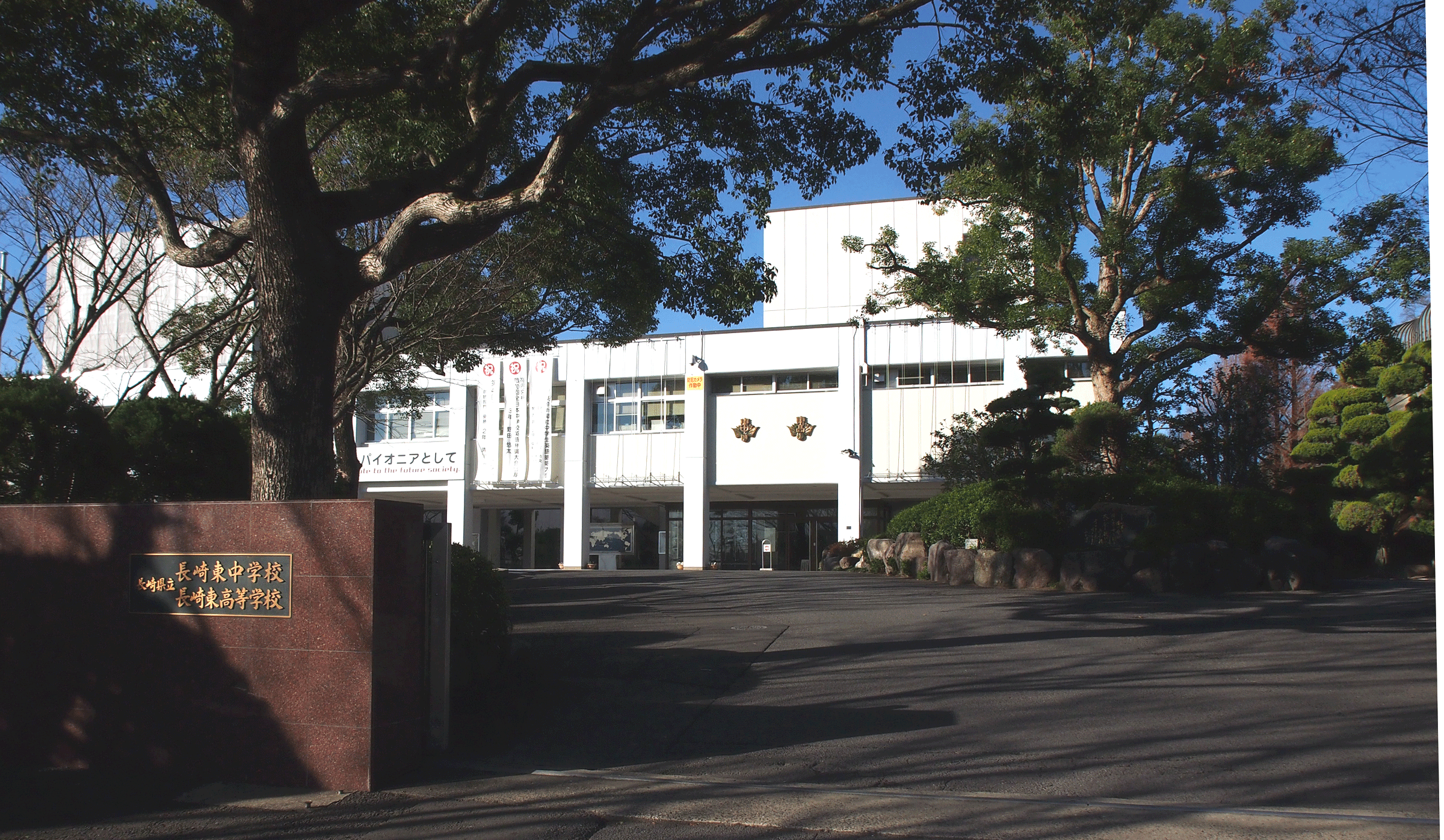 立山公園の上に立つ長崎東高校