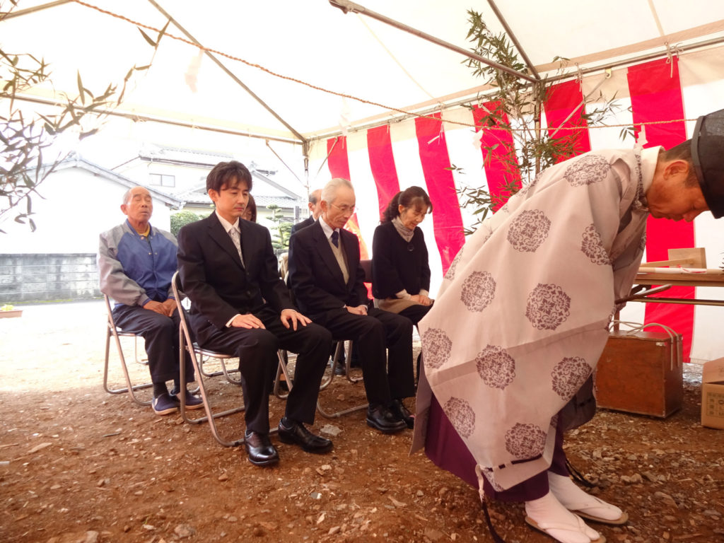 神主様のたおやかな笛の音が響き、格調高い地鎮祭になりました