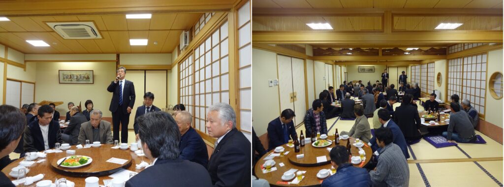 弊社常務の、今年の抱負。業者会副会長の乾杯
