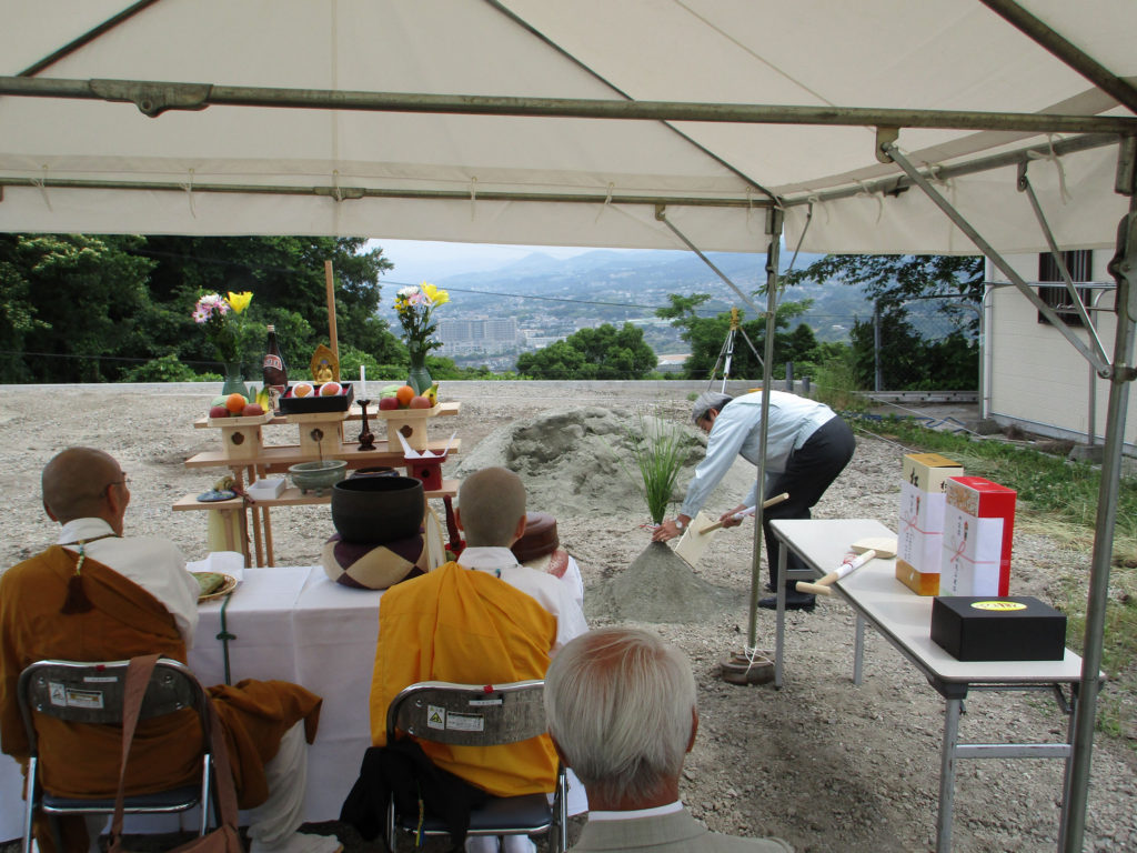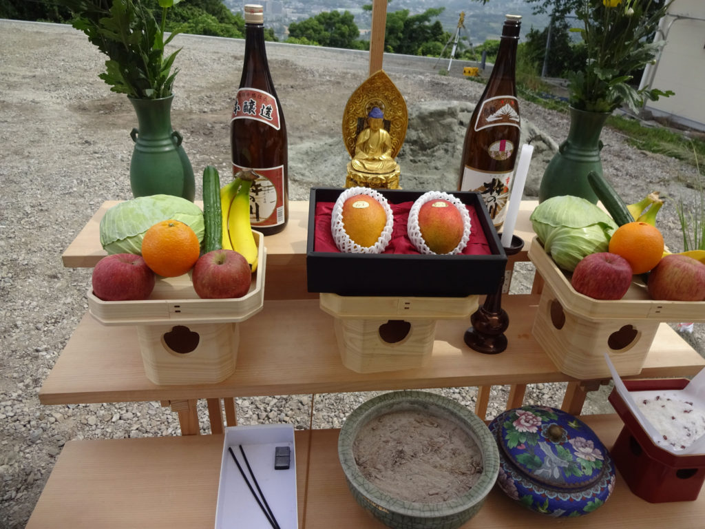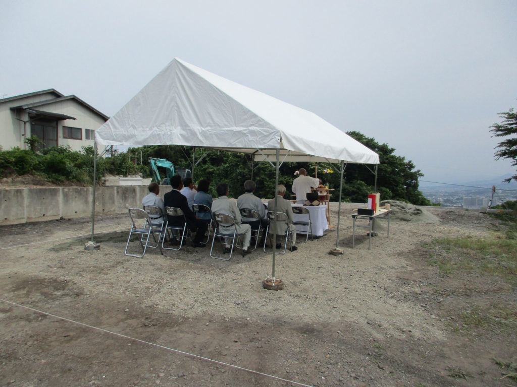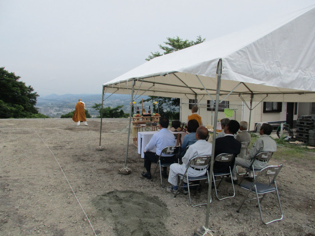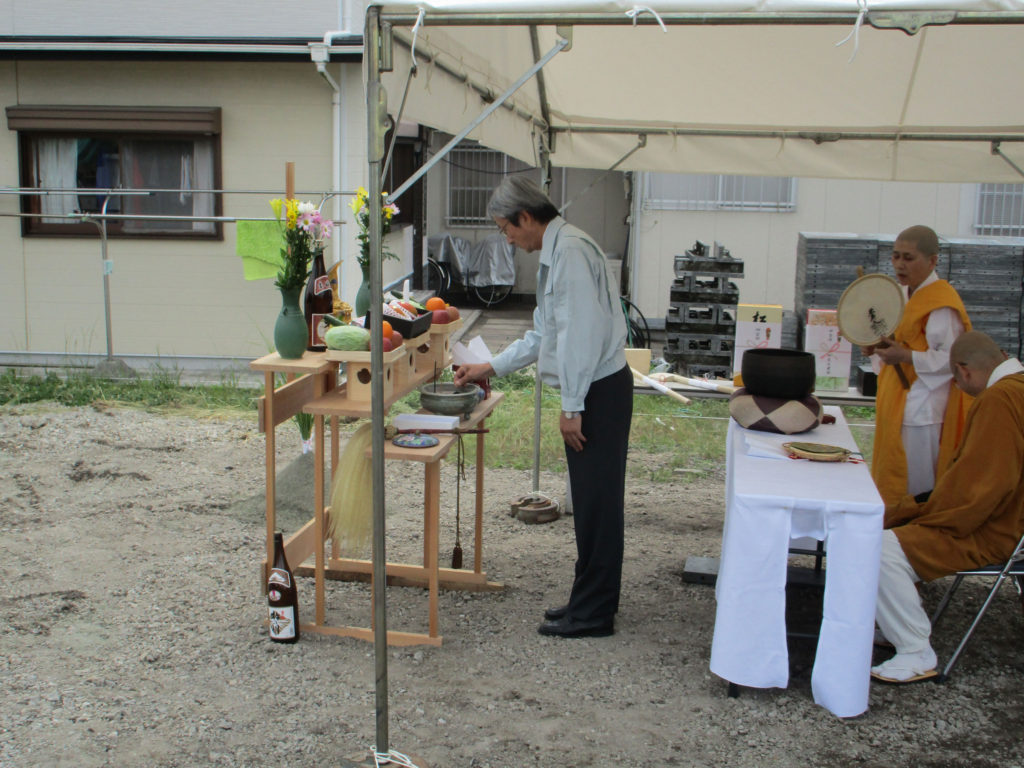 本日の地鎮祭は此処のお隣、…と言うことで妙法寺のご住職様による仏式の地鎮祭となりました