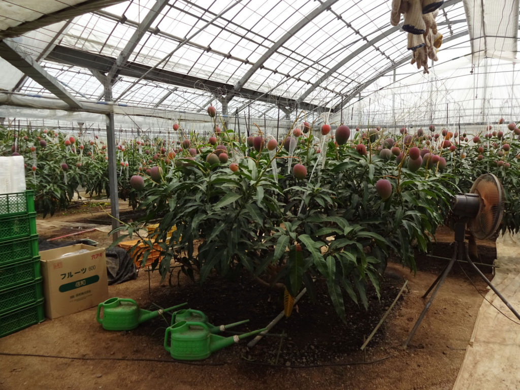 地鎮祭の後、山を降りた道の駅でマンゴー栽培の温室を見せて頂きました