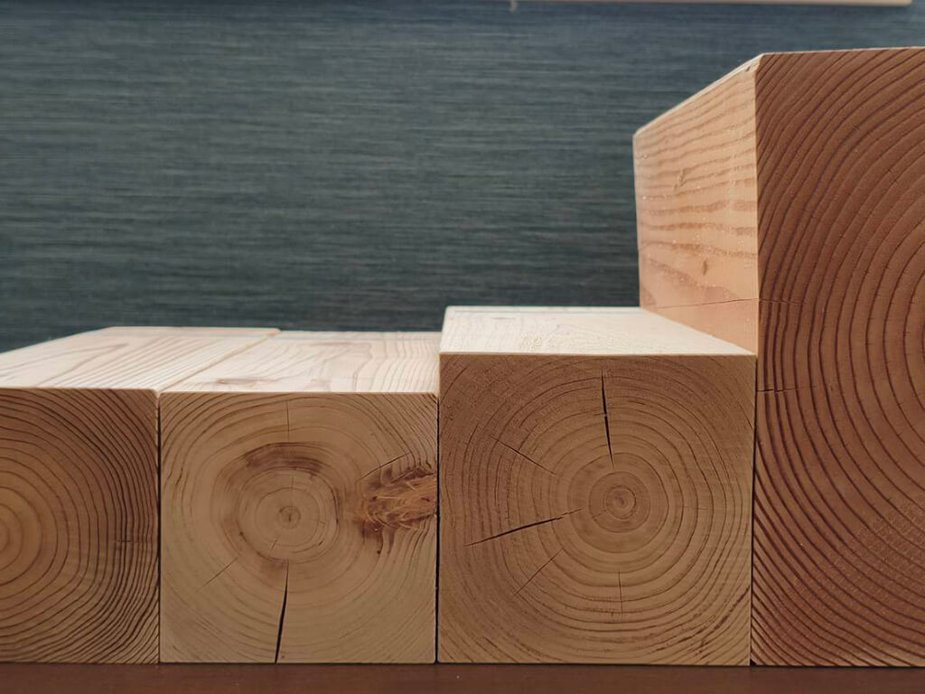 - ヒノキ:内部までしっかりと乾燥しているのが特徴で、耐久性・耐湿性・耐水性のいずれにも優れているため、建物の柱や土台として最適です。また、ヒノキのにおいには防虫・抗菌効果があるといわれています。
