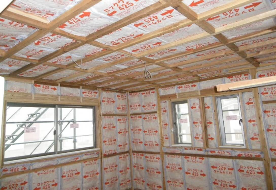 床と壁で断熱材を使い分けています。木は熱伝導率が低いので、熱が逃げにくく、屋外からの熱も伝わりにくいという断熱性に優れた特徴もあります。また、花丘建設で推奨する無垢の床材は足元が冷えにくいものを使用しています。