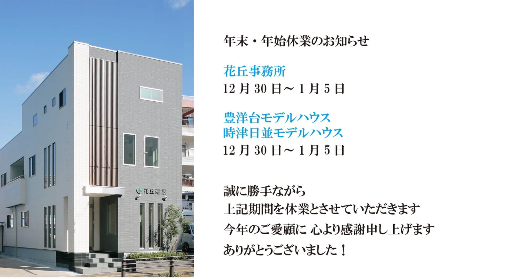 年末・年始の休業につきまして