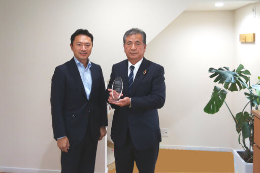 本日は福岡銀行長崎支店長様よりその認定にかかる記念の盾を頂きました