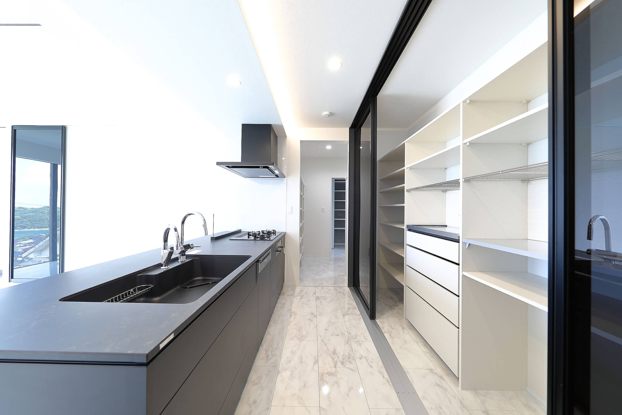 奥にあるパントリーとともに考え抜かれた充実収納です