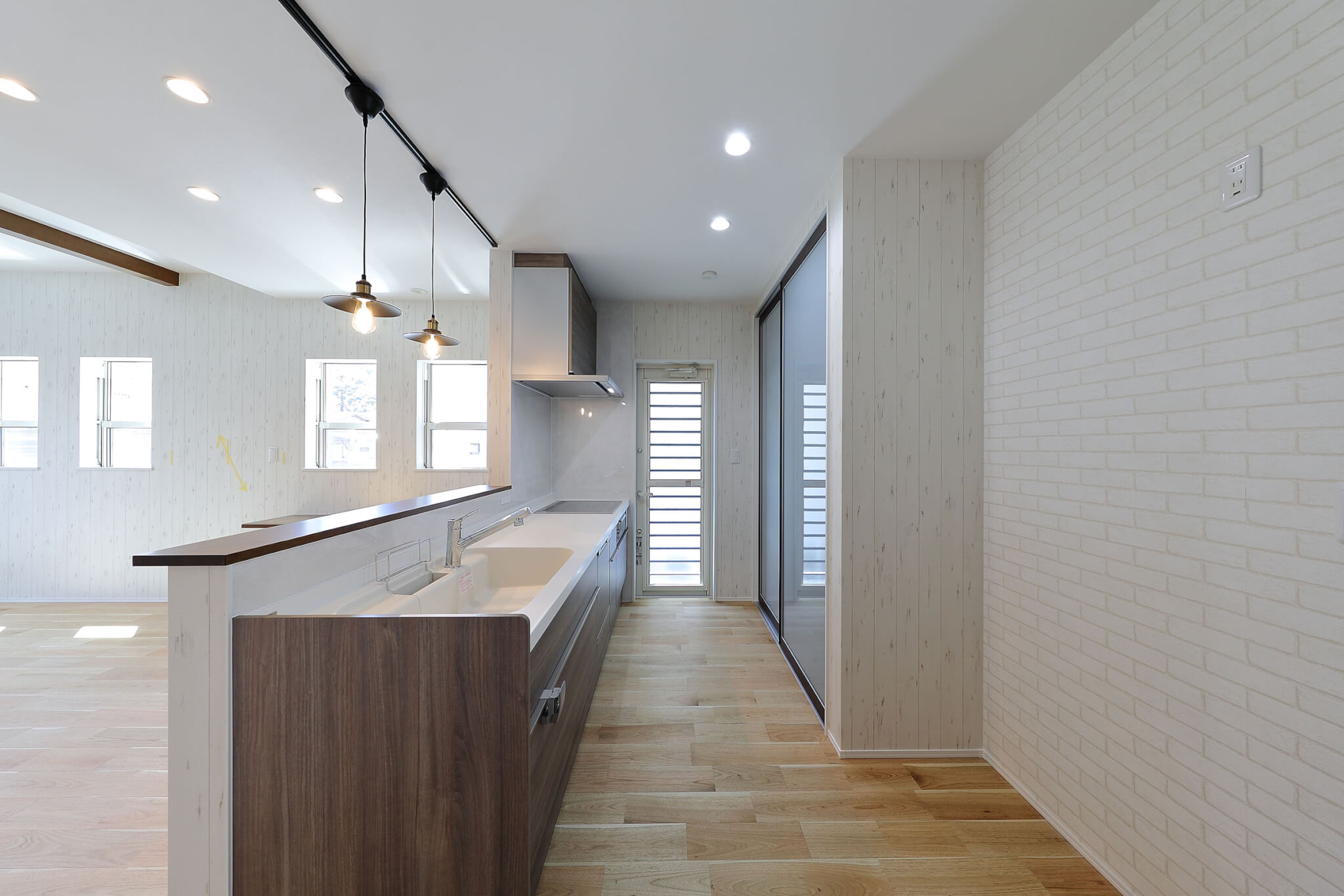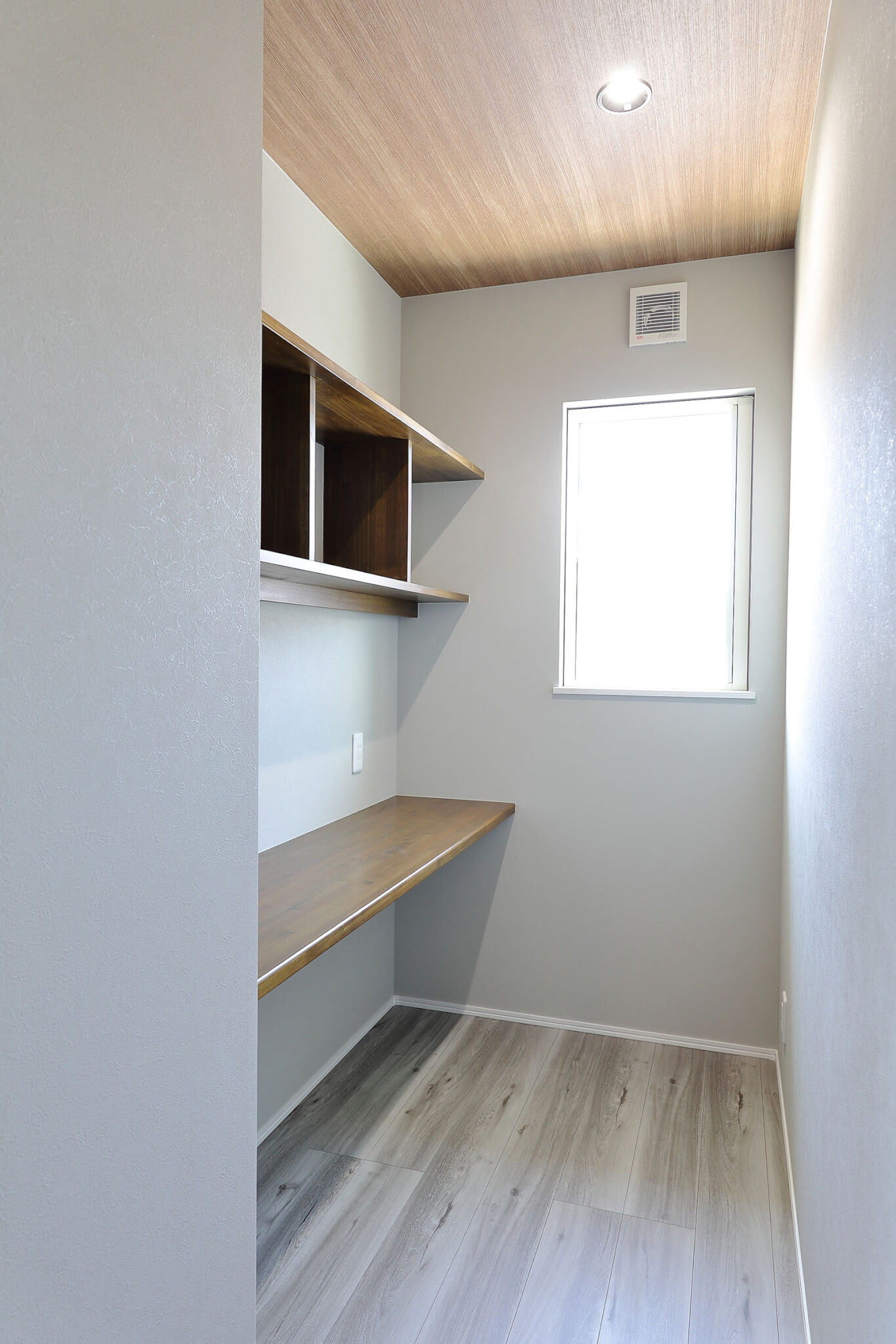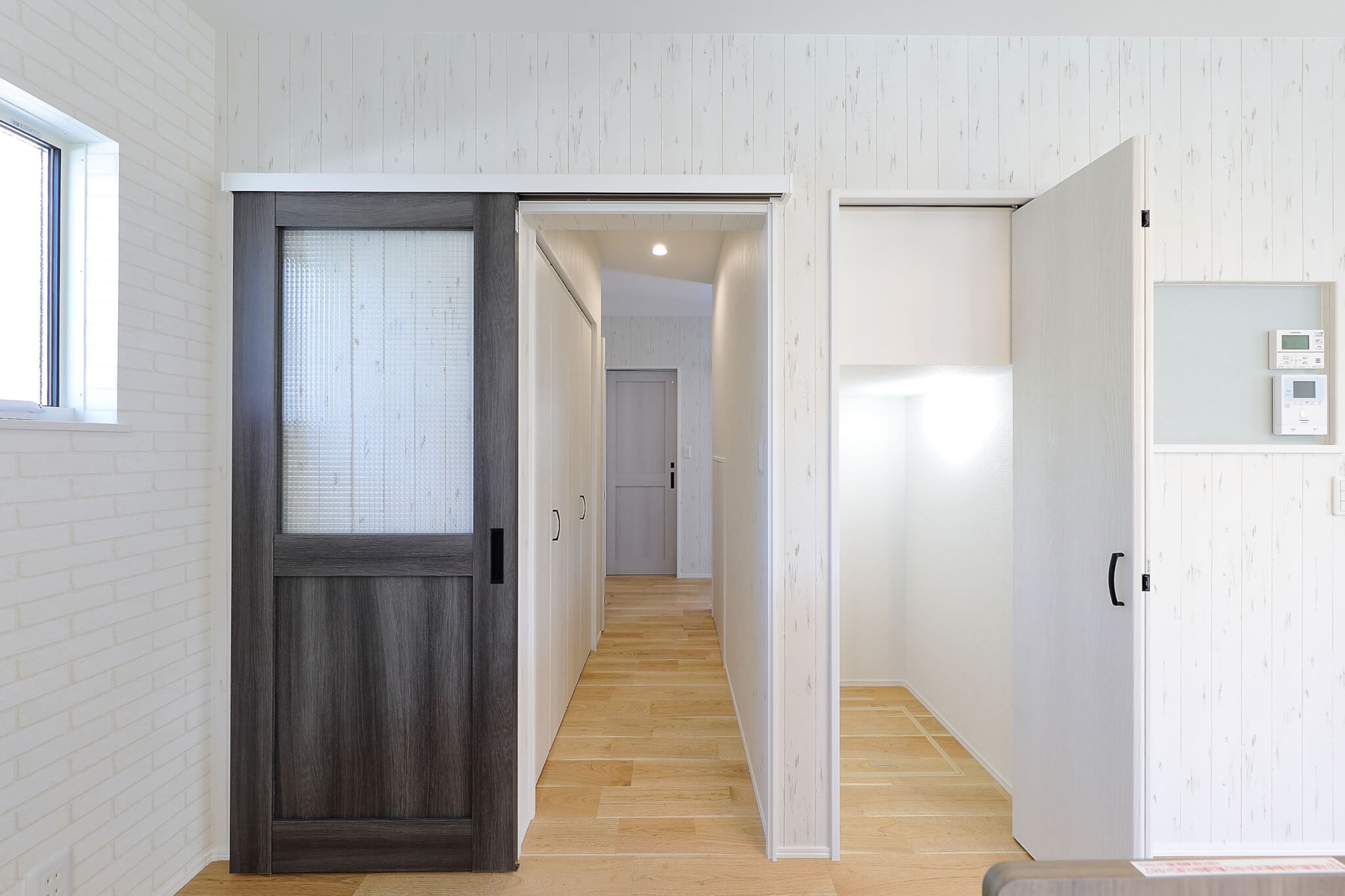 可愛いニッチ、キッチン背後の隠す収納棚、