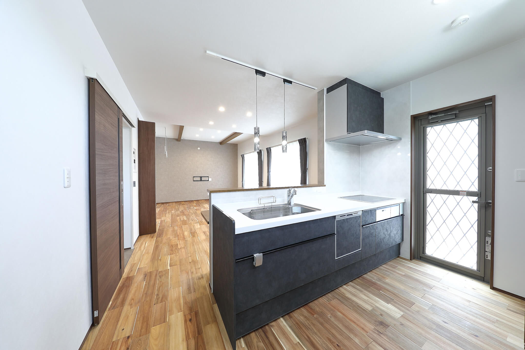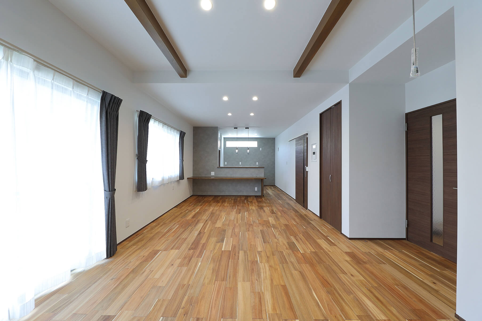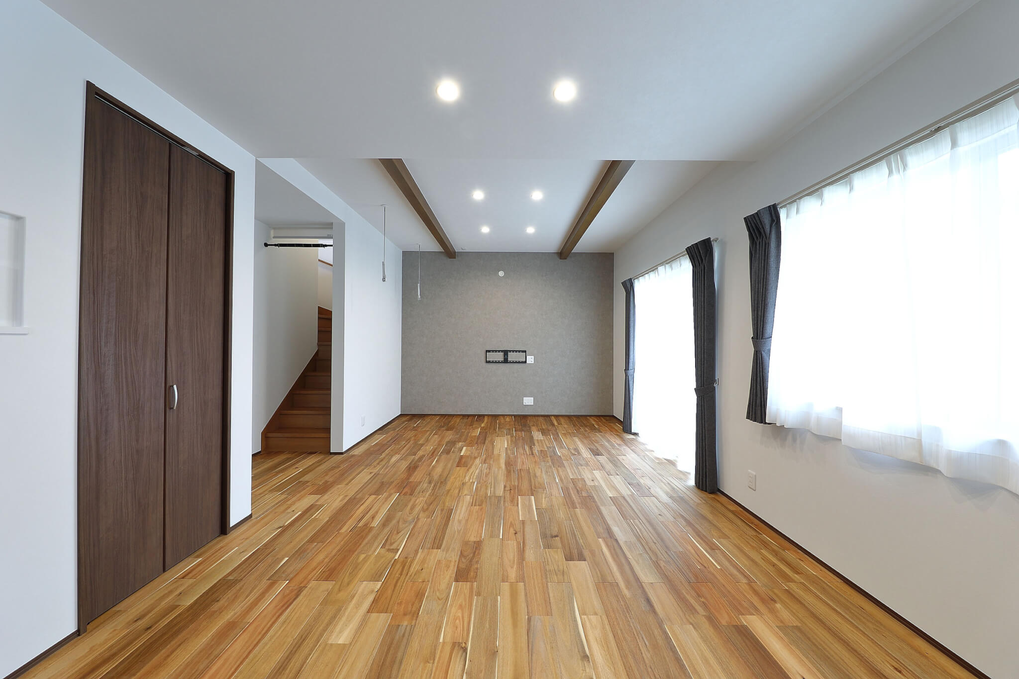 リビング床は自然塗装の無垢アカシア、