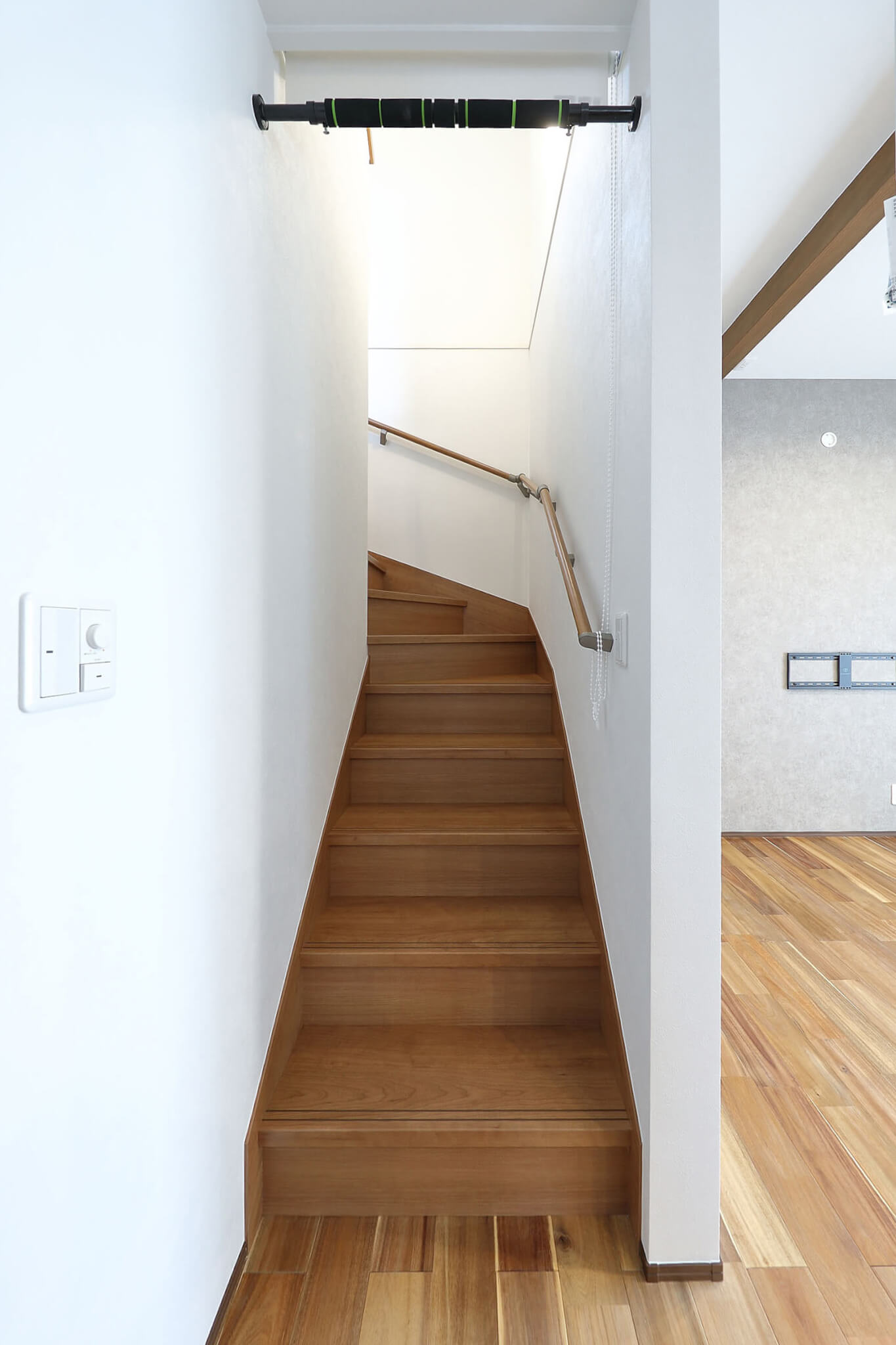 2階への階段につけた懸垂バー、