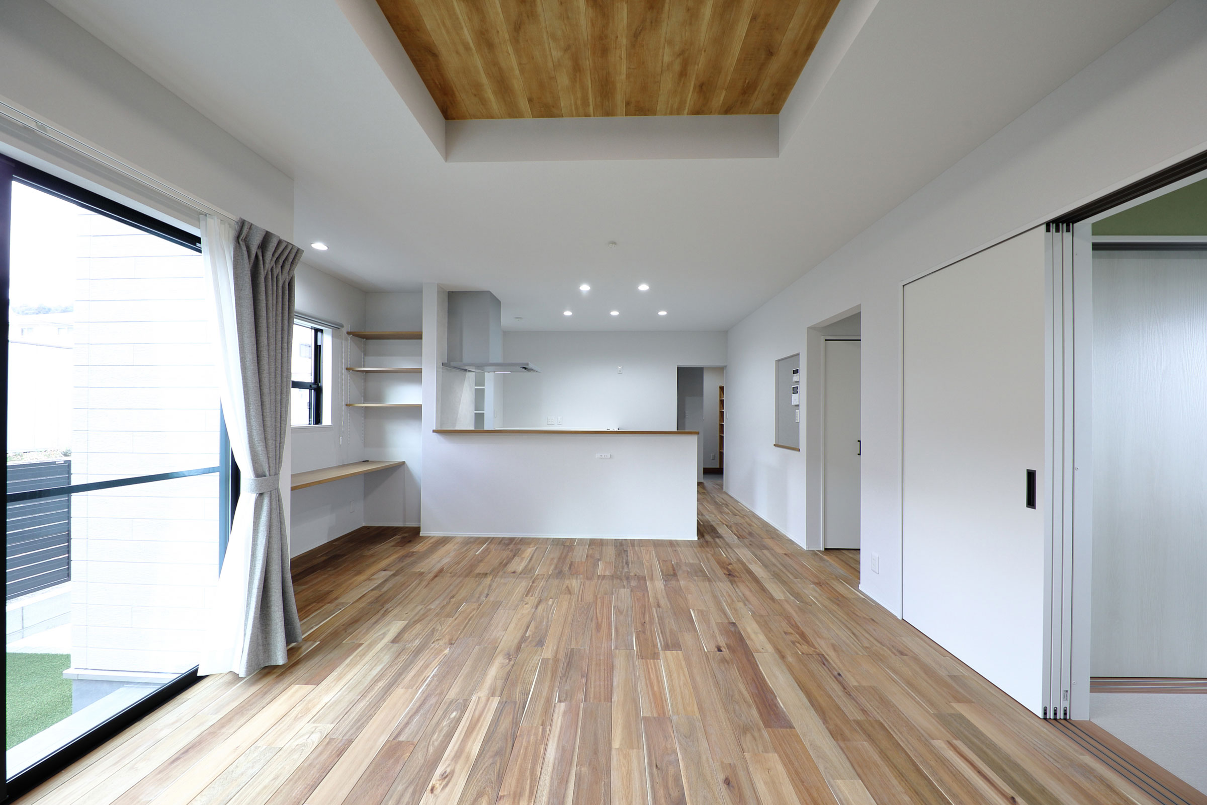 白に木目模様の折り上げ天井、