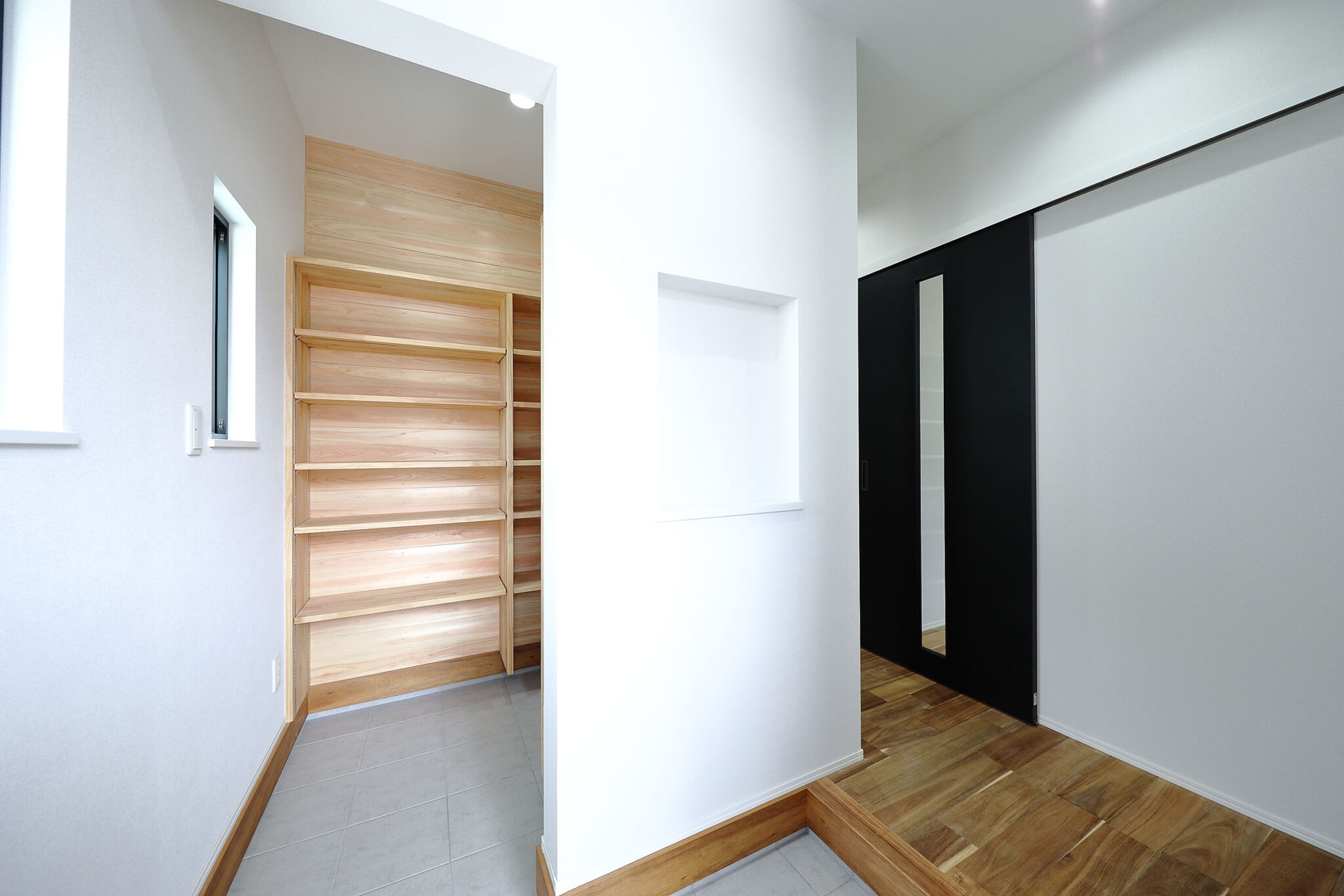 玄関から続く回遊動線、