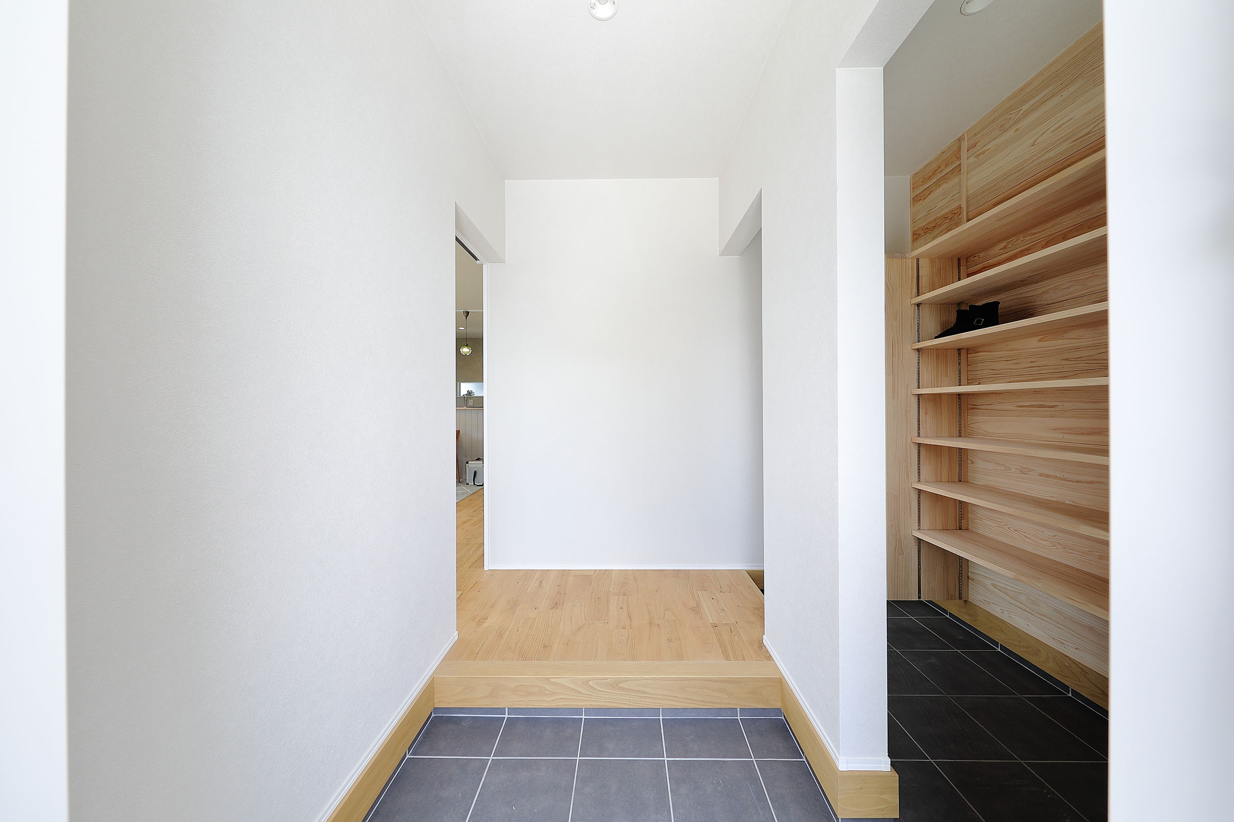 玄関ホールは木の香漂うシューズクローゼット、