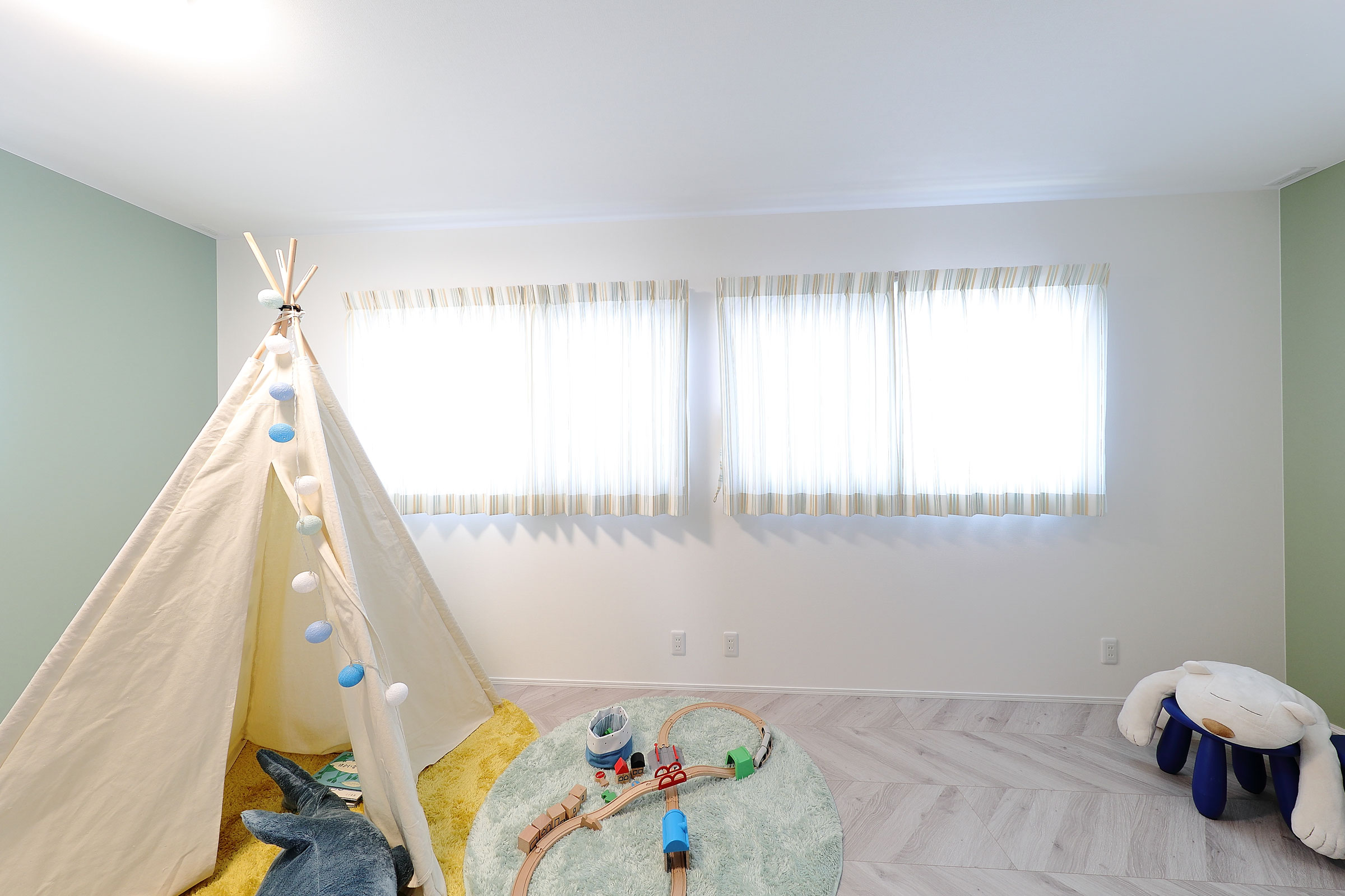 大きな窓と優しい色合いの伸びやか空間が拡がります